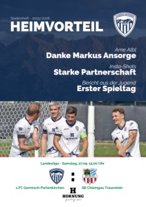 HEIMVORTEIL Stadionheft - 2025/2026 Landesliga - Samstag, 27.09. 15:00 Uhr 1.FC Garmisch-Partenkirchen SB Chiemgau Traunstein : Bericht aus der Jugend Erster Spieltag Insta-Shots Starke Partnerschaft Arne Albl Danke Markus Ansorge